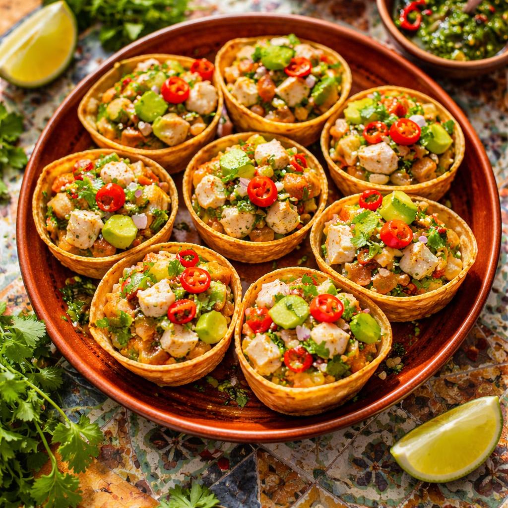 Fresh fish marinated in lime, cilantro, and red onion, served in crispy tortilla shells
